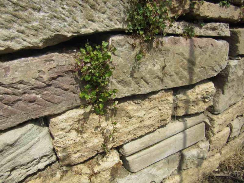 Hier war vermutlich der Riegel für einen Klappladen drin, die Grabsteintrümmer hab ich nicht fotografiert...