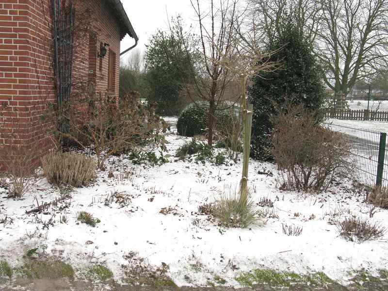 Mit diesen Bildern kann man sich das ganze doch schon viel besser vorstellen.Was ist das für ein Baum?Habe ich das richtig verstanden, dass es um ein rechteckiges Beet geht, das dann um die Hausecke weitergeht?Sicht im Prinzip von jeweils einer Seite, Garageneinfahrt bzw. Straße?Dann würde sich ja eine Höhenstaffelung von vorne nach hinten anbieten.Die größten Pflanzen zwischen den Fenstern platzieren...Was wächst an dem Spalier an der Hauswand?Welche Pflanzen (Hortensien?) sollen nicht verpflanzt werden?Farblich eher bunt gemischt, oder Teile in eher einem Ton?Troll, dein schönes Klinkerhaus weckt heimatliche Gefühle in einer Ex-Bremerin. Hier sind die meisten Häuser weiß (oder in Farbe) verputzt. Es gibt auch einige sehr schöne alte Häuser aus grauen Steinen, das sieht aber immer eher etwas düster aus...