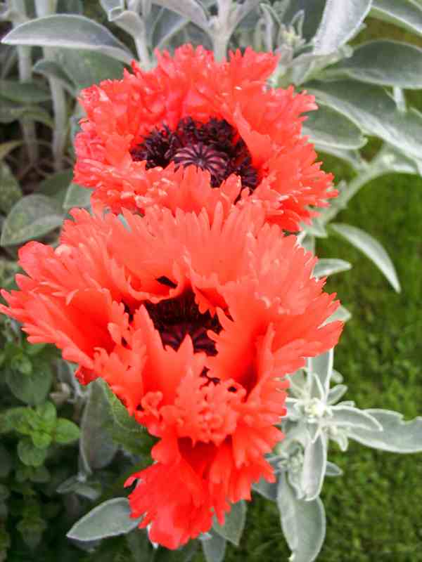 Bei diesem intensieven rot hat meine Kamera ein Problem, aber ich hoffe, daß man erkennen kann was das ist. Eine meiner lieblings Blumen, Mohn. Papaver orientale. Einer von etwa 6 Farbvarianten die ich habe. Ich liebe diese Blume, mein Mann sagt, ich sei Mohnsüchtig.