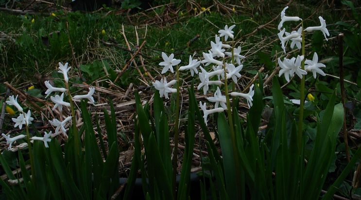 In den 80-er Jahren habe ich mal während eines Griechenlandurlaubs eine wilde Hyazinthenzwiebel geschenkt bekommen. Sie hat sich im Laufe der Jahre vermehrt, ich kann einzelne ausgraben. Und das, obwohl sie kaum Pflege bekommt.Sie blüht blau, relativ früh, zusammen mit späten Krokussen. Jetzt ist sie schon verblüht.