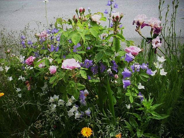 Inzwischen hat diese Sorte einen Namen: 'Poseidon', benannt nach unserem Kater. Zwar als Wassergott nicht unbedingt treffend, aber man kann sich den Namen wenigstens merken. Hierzulande nennt man in den Baumschulen und Gartencentern die Rosenbegleitstauden auch Rosenkavaliere. Man kann sich über dieses Thema in alle erdenklichen und farblich kreativen Richtungen auslassen. Nur Lavendel will ich nicht hören!