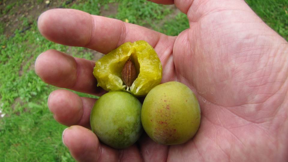 Hallo Pflaumefreunde, ich war gerade in England/Brogdale und habe die Sorte old green gage in mein Herz geschlossen. Die Frucht ist etwa walnußgroß und im reifen Zustand eher häßlich. Aber der Geschmack ist einzigartig!! Der Biß ist leicht knackig und der Kern lößt perfekt vom Fleisch. Die Frucht ist eine reine Aromabombe. Jetzt ist meine Frage, ob es sich hierbei um die große grüne Reneclaude handelt. Anbei ein paar Bilder. Die Bäume waren sehr reichtragend