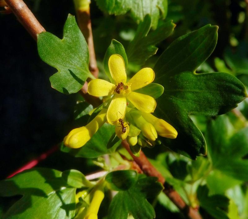 Interessant, wie sich die Insekten auf die unterschiedlichen Arten einspielen. Die Hummeln findet man oft an Stachelbeeren und Blutjohannisbeeren, Die Wespen mögen rote Jb und Stachelbeeren umd die Ameisen scheinen Goldjohannisbeeren toll zu finden. An der Pflanze wuselt's nur so. Blattläuse schleppen sie nicht an. Ich meine, dass sie sogar kurz vor der Öffnung stehende Blüten aufbeißen.
