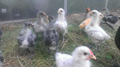 So eine hübsche bunte Truppe! Leider oder auch nicht leider werden sie sehr schnell groß.Meine 3 sind heute 9 Wochen alt. Ich habe sie heute alle auf dem Arm gehabt, aus der Nähe beguchtachtet und etwas gestreichelt. Mein Mann kam dann, fragte, welches die zahme Henne sei und hat sie fast totgestreichelt. Männer! Außerdem wurden die beiden Hennen von ihm benamst: Gertrud und Gudrun. Dann kicherte er etwas, meinte Gertrud erinnere ihn an den Film "Die Reise zum Mittelpunkt der Erde", weil dort jemand mit einem Huhn Gertrud unterm Arm herum gelaufen sei. Ich habe gegooglet: Gertrud war eine Ente. Männer