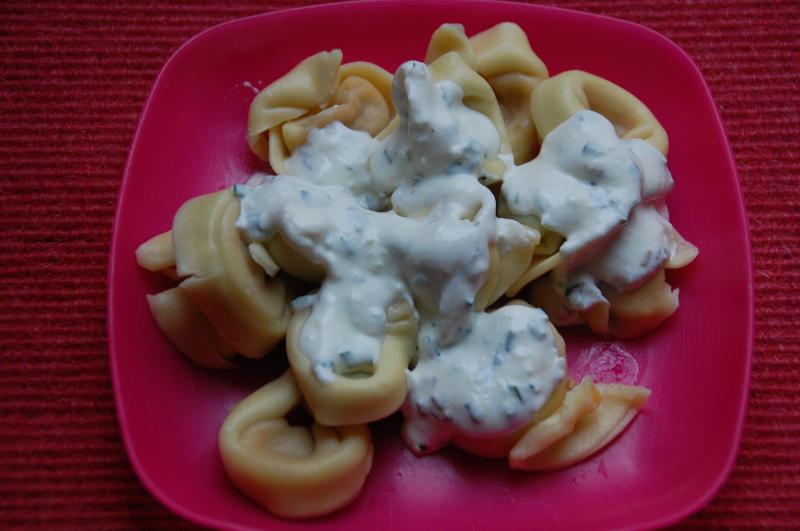 . Ist diese Kombination denn zu empfehlen?Hier gab es (Fertig)Tortelloni (Spinat & Ricotta) mit Schnittlauchsoße (Sahne, Frischkäse, Schnittlauch).