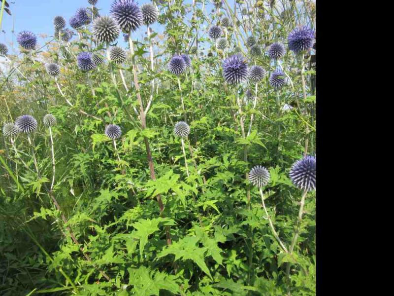E. sphaerocephalus sät sich hier reichlich aus, der besagte blaue Über-zwei-Meter-Klon hingegen gar nicht, ist vielleicht eine sterile Hybride.