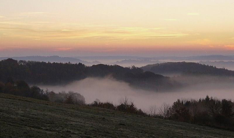 klasse rath und ja, ich seh den engel. auch das winterbohnenkraut hat seine reize. ich komm im moment wenig zum fotografieren, dafür räum ich peu a peu mein archiv auf. hier noch ein morgennebel vom anfang november, den ich beinah gelöscht hätte.