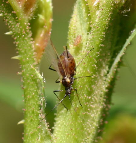 sie sind wieder da - die Heuschrecken! Dieses putzige Vieh mißt gerade mal 5 Milimeter (ohne Fühler) und beißt entsprechend winzige Löcher in frisch ausgetriebene Blätter ::)Liebe Grüße, Barbara