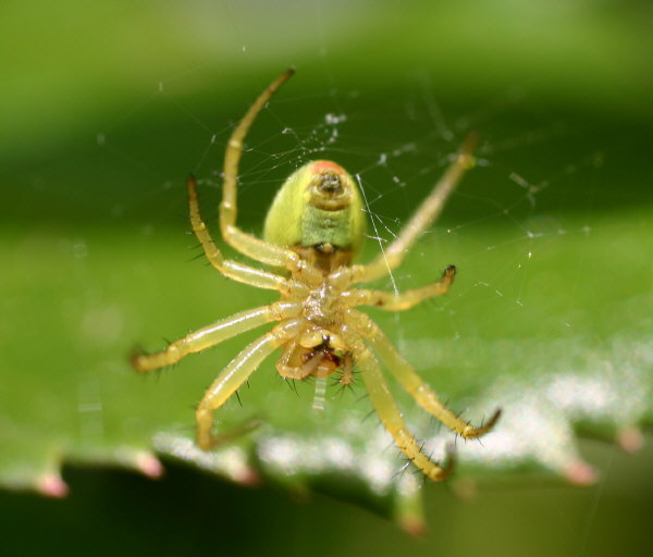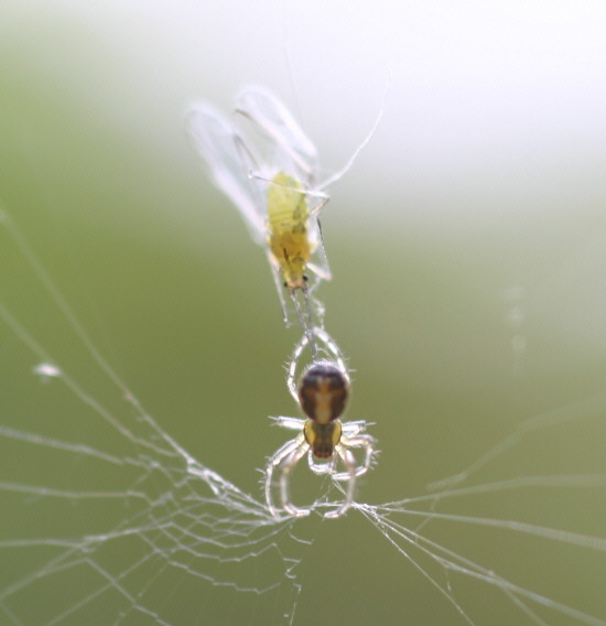 Und hier noch einmal.Sie scheinen Ameisen zu fressen, die die Blüten gerne besuchen. Auch auf Schwebfliegen wird Jagd gemacht.