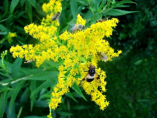 Bienen und Schwebefliegen lieben die Goldrute.Es summt den ganzen Tag.LG Viola