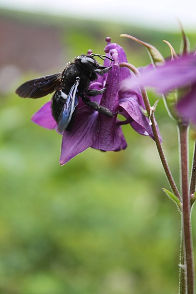 In den letzten Jahren hatte ich immer eine Holzbiene im Garten, dieses Jahr sind es mindestens 7, die alle in einem toten Apfelbaum leben und dort kräftig Löcher bohren, unten liegt alles voller Bohrmehl.Ich habe das Gefühl, dass sie es nicht mögen, wenn ich dort herum werkele, denn dann brumseln sie mir so um den Kopf, das es unangenehm wird...Fotografieren ging bisher nicht- sie sitzen einfach nicht still...