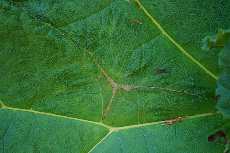 Interessant zu sehen, dass die Gunnera in der Lage ist, Blattrisse aktiv zu schließen, hier auf ca. 30 cm Länge.