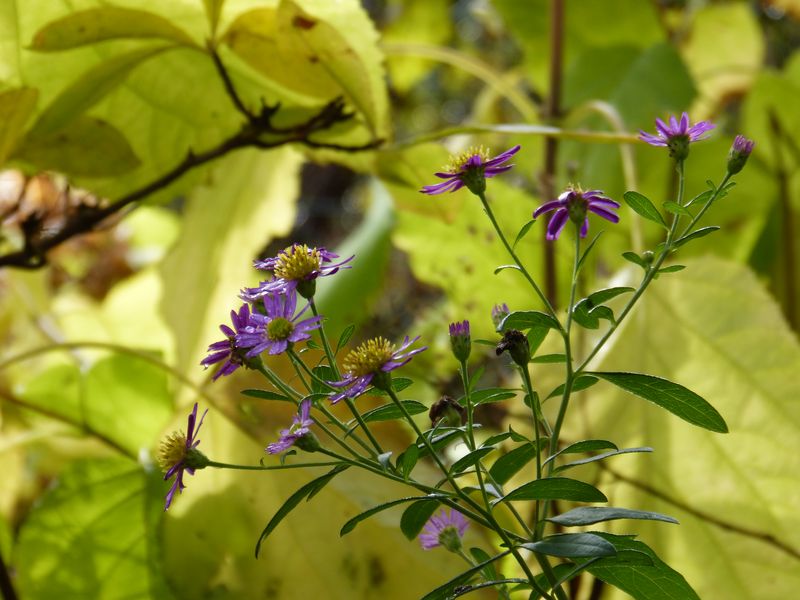 Aster ageratoides 'Ezo Murasaki' steht nun im schönen Kontrast zu gelbfärbenden Stauden und Gehölzen.