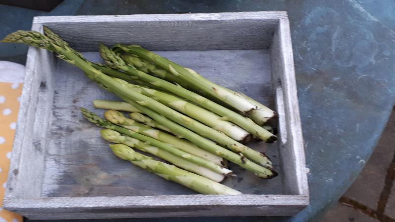 Heute gab es die allererste Ernte aus dem neuen Grünspargelbeet. Das Warten hat sich gelohnt!