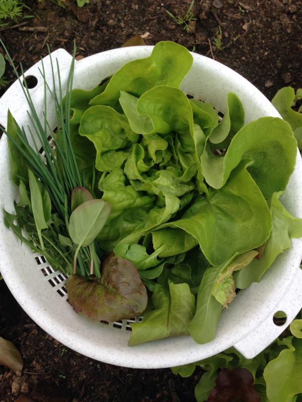 Ernte von letztem Donnerstag, der erste maikönig mit etwas Pflücksalat, Babyspinat und Kräutern. Seit dem täglich Radieschen und Eiszapfen :D