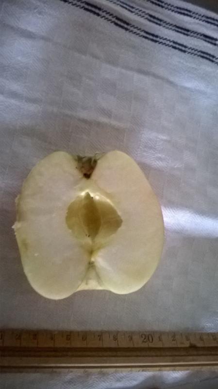 Also ich habe mir jetzt mal die Mühe gemacht und habe jeden Gravensteiner den ich in den letzten Tagen gegessen habe zuerst einmal aufgeschnitten um das Kernhaus zu betrachten und es war genau so wie ich ganz am Anfang schrieb: Die Früchte hatten ausnahmslos alle ein hohles Kernhaus.