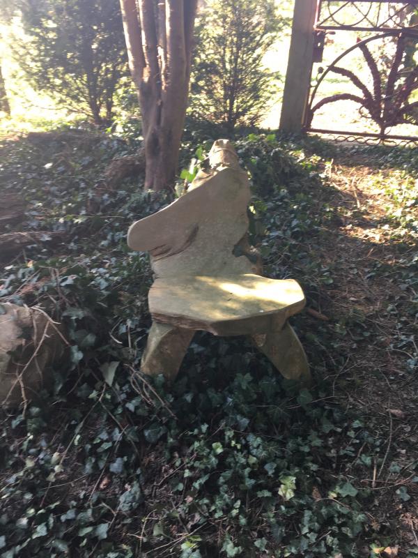 Und entdeckt einen wunderbar lauschigen, versteckten Platz, sogar mit murmelndem Wasser....vielleicht erinnert es den Besucher an ein Versteck aus der Kindheit.....