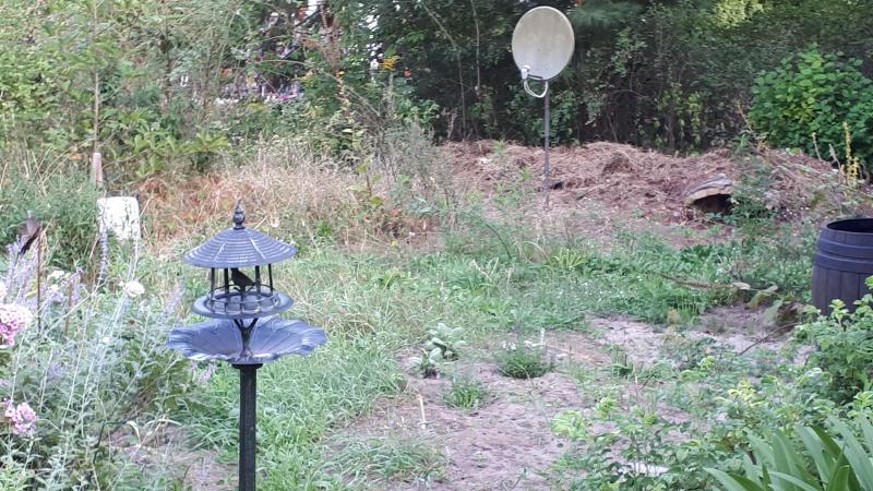 Das "Ensemble" ist einfach nicht stimmig ;D ;D ;D, aber es ist schön trocken und hat viele neue Wiesenpflanzen bekommen, Wein raus....vorher stand die Schüssel in der Mitte, aber die Ulme beim Nachbarn war zu groß geworden.....Schüssel wurde nach hinten versetzt. Das ist wirklich schon besser. Und dort am Rand leiste ich mir unter einer Schwarzkiefer des Nachbarn noch eine Laubmiete... irgendwo muss ich mit dem Zeug bleiben. In den Wald geht nicht mehr - da ist jetzt ein Wildzaun drum... und alles nach hinten karren ist auch ganz schön viel...