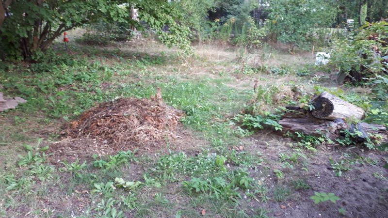 Die Mitte der Wiese mit der abgesägten Lärche. Dort steht der Stein von Emma Pinkowski - der Mutter des Vorbesitzers des Gartens von Spatenpaulchen :D