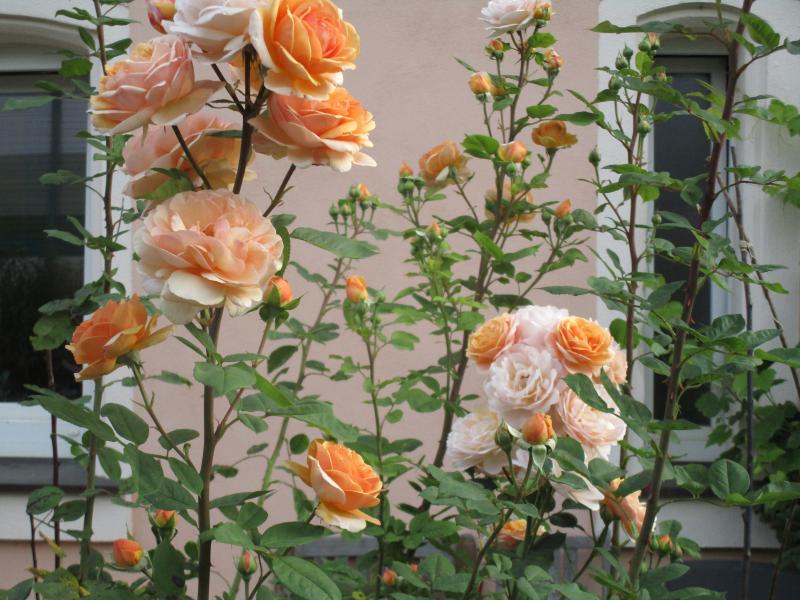 Buff Beauty ist bei mir deutlich heller und anfangs mehr gelb, nicht orange. Man könnte das dem ziemlich schattigen Platz zuschreiben, aber ein Bekannter hat in seinem Garten genauso Buff Beauty in blasserer Farbe.