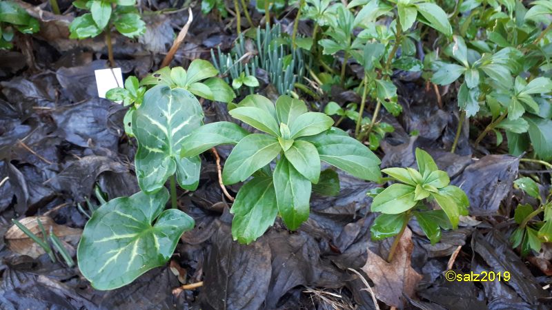 Überhaupt sind die Schneeglöckchen hier gerade erst im Kommen (s. im Bild hinten). Der Aronstab*?* im Bild hat*!* ein sehr kleines Blatt.