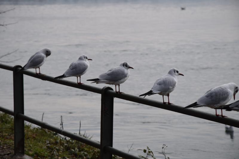 Ich war vor ca. 14 Tagen am Rheinufer spazieren. Hier warten die Möwen auf die Sonntagmittagfütterung.