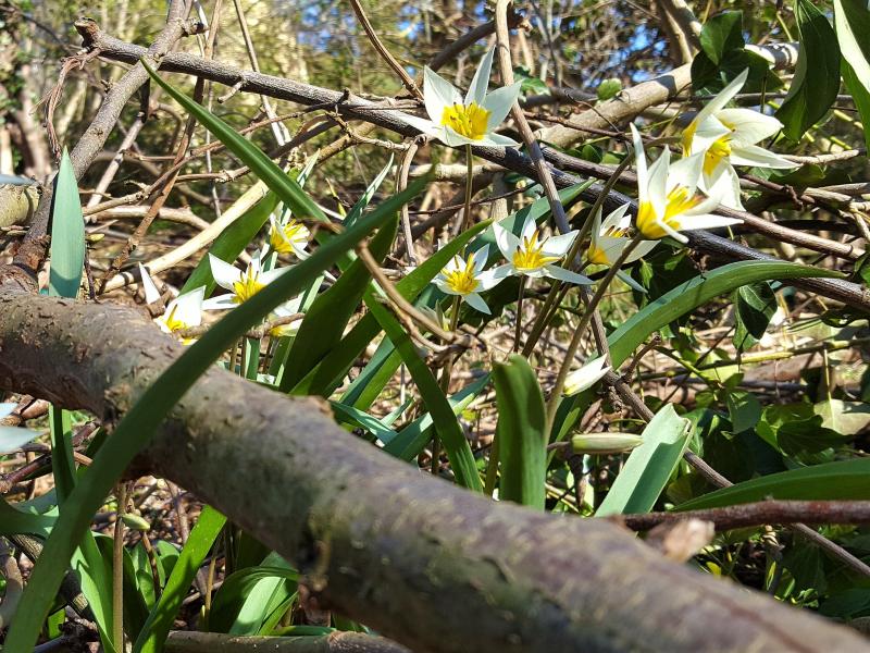 Jetzt tauchen Jahr für Jahr Frühblüher auf, die ich garantiert nicht gepflanzt habe... und es werden immer mehr. Hasenglöckchen, Crocusse, Narzissen, Blausternchen, Prärielilie und auch Wildtulpen. Von denen war jahrelang nichts zu sehen. Irgendwie seltsam und wunderbar.