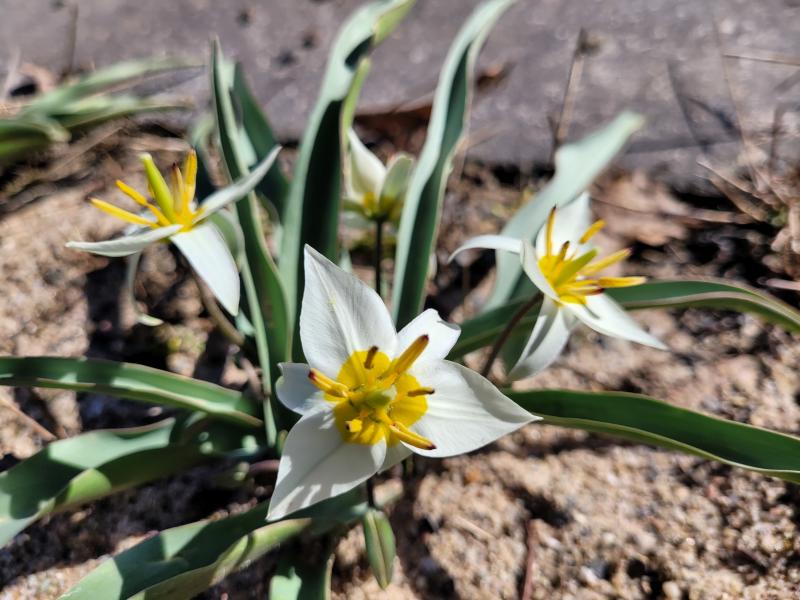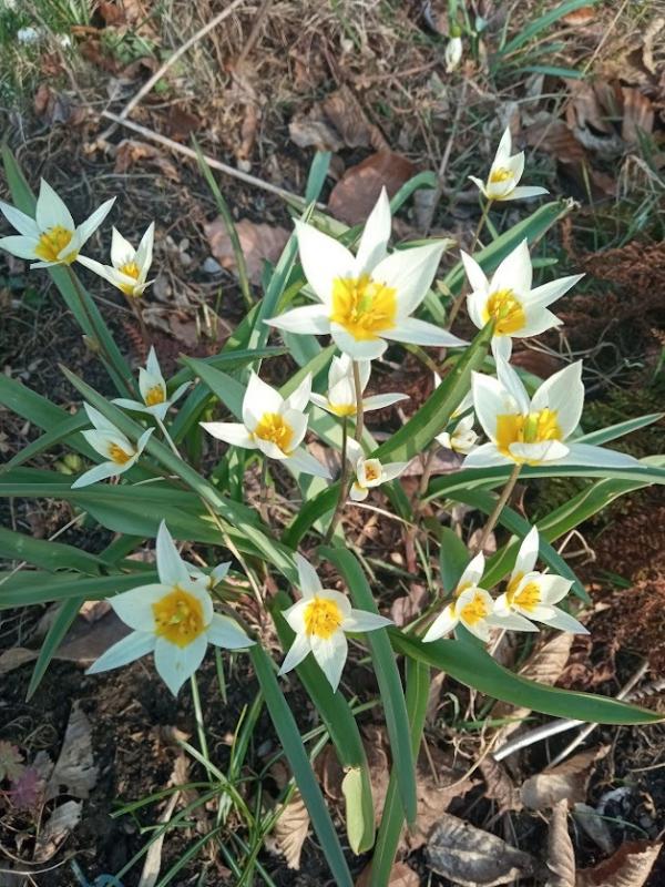 Wie immer die erste Wildtulpe bei uns im Garten : t. turkestanica, Bestand dieses mal durch Rehe reduziert.