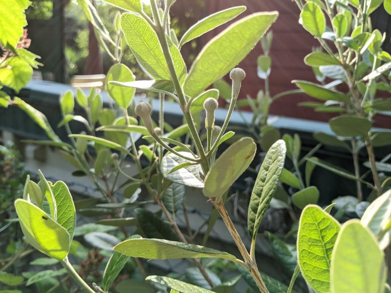 Irgendwem hab ich unlängst in irgendeinem Topic ein Gesamtbild von meiner großen Feijoa Pflanze versprochen. Hier ist das Foto.