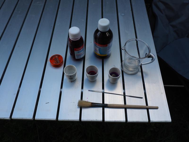 so, jetzt hatte ich meinen Spaß! Die Iris sehen bunt aus, am besten hat Wasserstoffperoxyd geschäumt und Eosin gefärbt. Ich hatte noch Tigelchen aus meiner Zeit in der Chemie. Rosenthal- und Königlich-Preußisches-Porzellan.