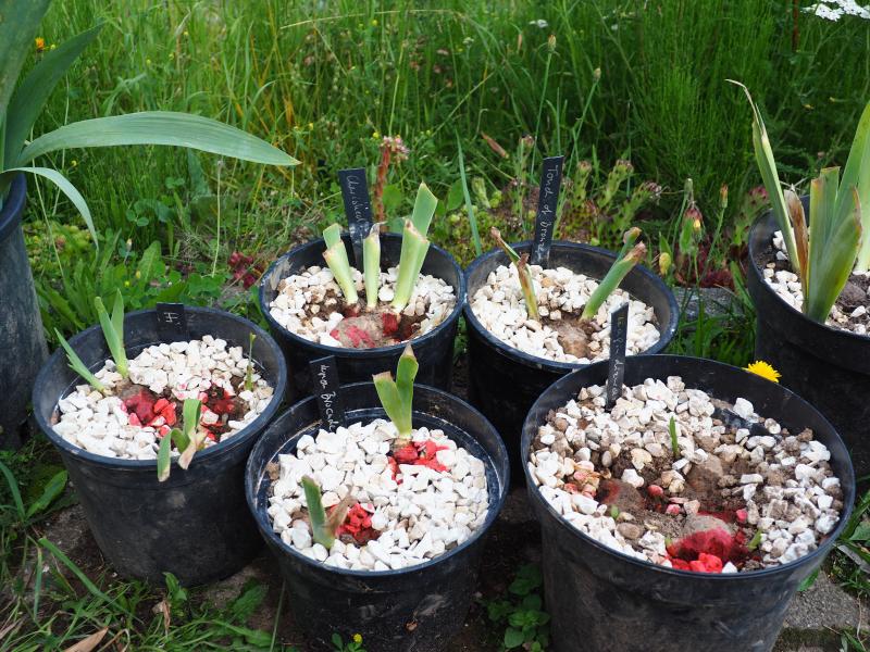 Tatsächlich habe ich es dieses Jahr geschafft die Iris-Vereinzelungs-Anlage neu durchzusortieren. Viele der iris sind umgepflanzt, meist nach Sorte getrennt. Immer noch gibt es viele Rhizome von denen ich noch nicht weiß welche Iris es ist. Ganz besonders ärgerlich: In dem Sortierwahn habe ich eine Iris (verm. Ambassadeur) wieder mit dem vermutlichen Sämling davon wieder in einen Topf geworfen. Grrrrrr. Nun ja es sind nicht so viele, ich pflanze sie jetzt wieder auf und dann in zwei drei Jahren sieht man mehr.