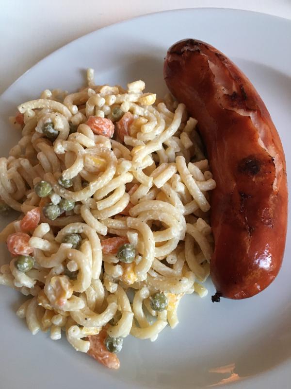 Gestern Rote vom Grill mit Nudelsalat. Und nachher gehts zur Winterfeier (statt Weihnachstfeier) vom Geschäft. Dort wirds Buffet geben..