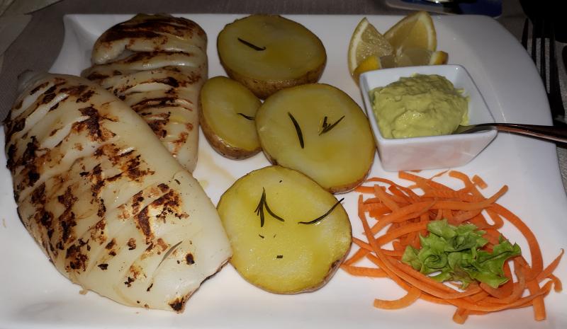Heute haben wir einen neuen Italiener ausprobiert. Ich hatte gegrillten Pulpo mit Rosmarinkartoffeln und Salat. War mittelmäßig. Die anderen hatten Pizza. Die war hervorragend.