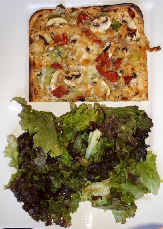 Heute gab es Flammkuchen mit Porree, Champignons und Tomaten