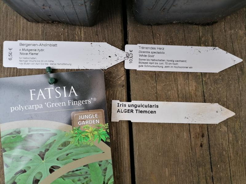 Jüngster Fang ist eine Begonia 'Dark Side of the Moon'. Mit feschem Etikett "outstanding", soll wohl winterhart sein. Steht sicherheitshalber im Treppenhaus, da erst kürzlich im Ramsch erstanden