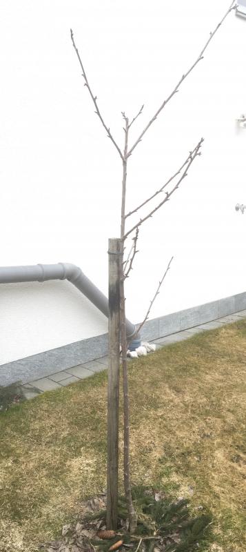 Meine Kirsche Kordia kommt jetzt ins 3. Standjahr und ich habe ihr damals bei der Pflanzung nur einen minimalen Schnitt verpasst, den Stamm bei 175 cm und ein paar Seitenäste eingekürzt.