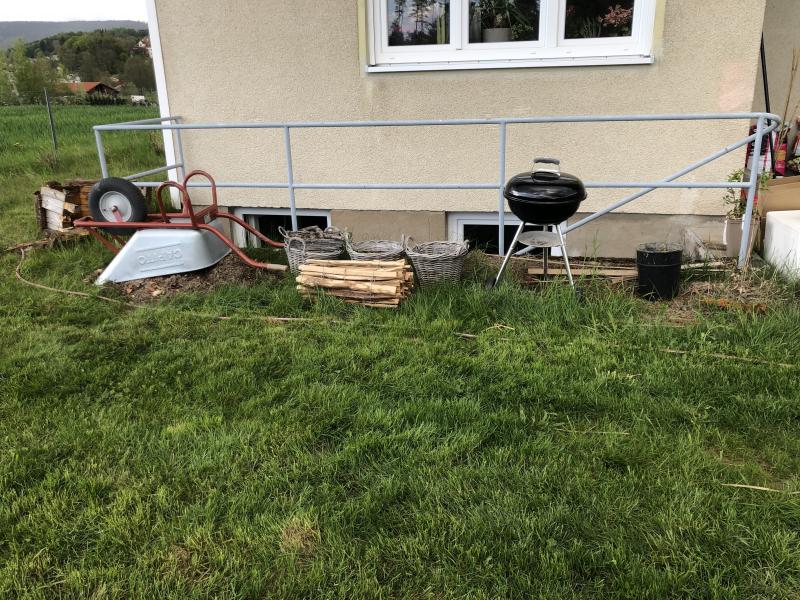 Das Geländer gefällt mir nicht. Allerdings werden wir in ein paar Jahren das Haus wärmedämmen lassen, da wäre es vielleicht ungeschickt, da jetzt schweres Gestein hinzusetzen.