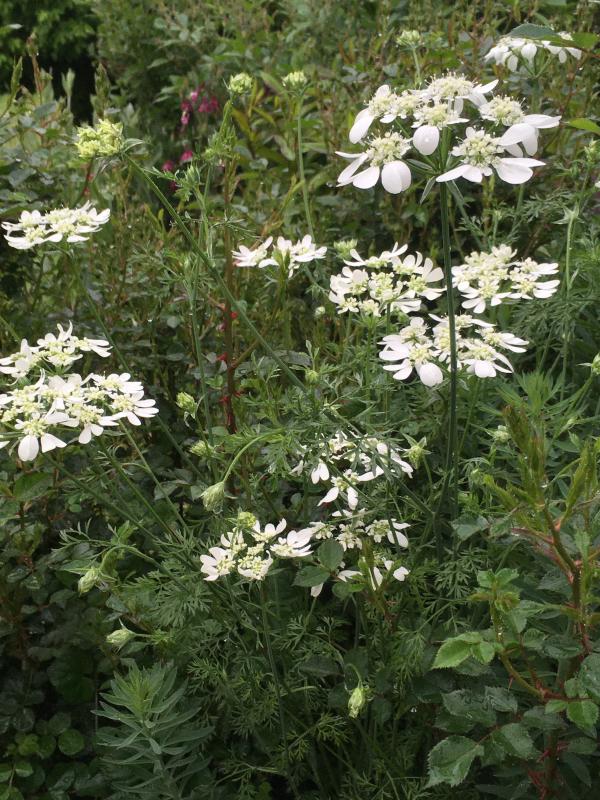 In meinem Steingarten blüht jetzt der Diptam, die weiße Form. Sie blüht hier immer einige Tage früher als das Rosa Exemplar. Eigenartiger Weise setzt sie nie Samen an, während die Rosa sehr viele Sämlinge durch Selbstaussaat bringt.