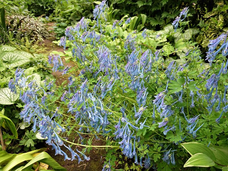 Merkwürdig: Dieses Jahr wuchern die Corydalis und blühen unermüdlich. Kühle und Feuchte scheint ihnen sehr zu behagen.