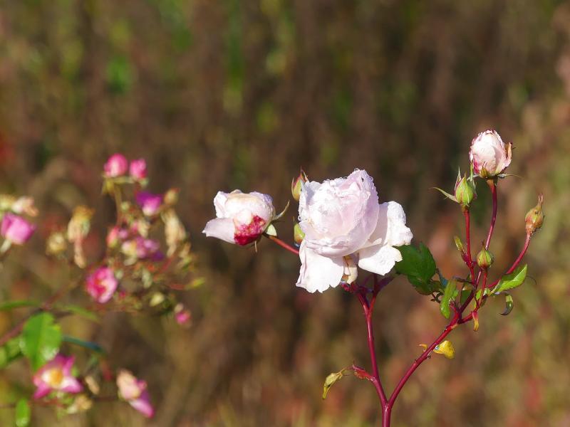 Man würdigt eben jedes blühwillige Pflänzchen im Herbst.Mir ist sonst auch nie aufgefallen,dass Constanze so rote Triebe macht.