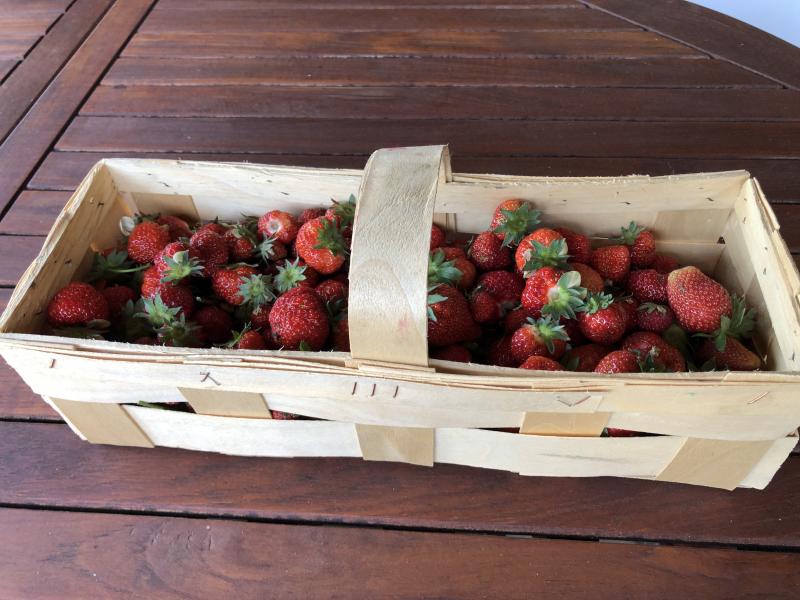 Die Kirschen sind bei uns auch noch weit von der Reife entfernt. Wir "behelfen" uns vorläufig mit den Erdbeeren, da geht es jetzt so langsam richtig los: