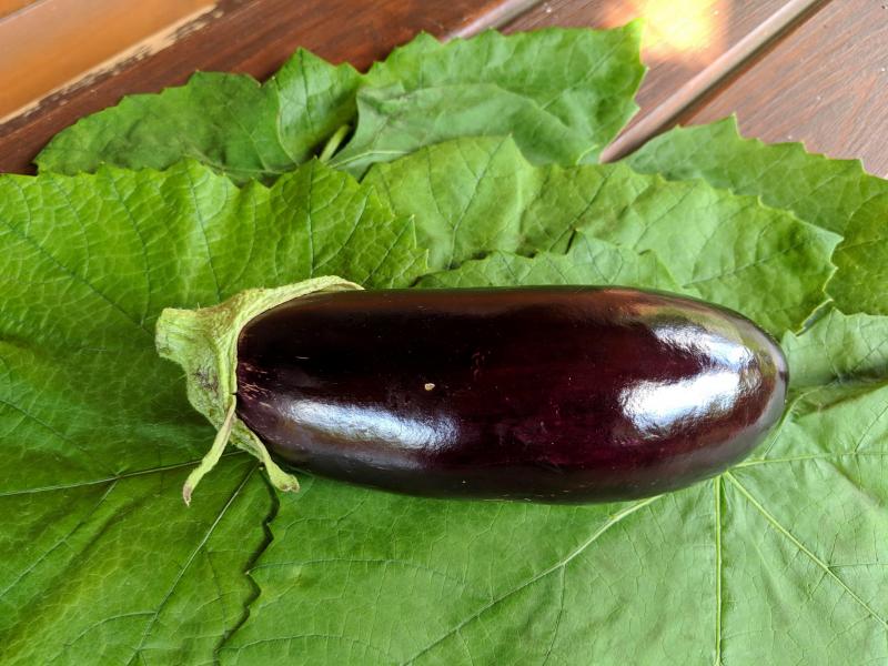 Der erste Melanzani für dieses Jahr, sowie Weinblätter.