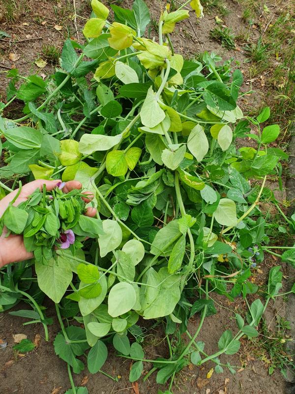 Jetzt musste ich die Beete vom Erbsen-dschungel befreien und hab nur eine Handvoll Schötchen und Knospen für den Salat aus dem Riesenberg herausbekommen.