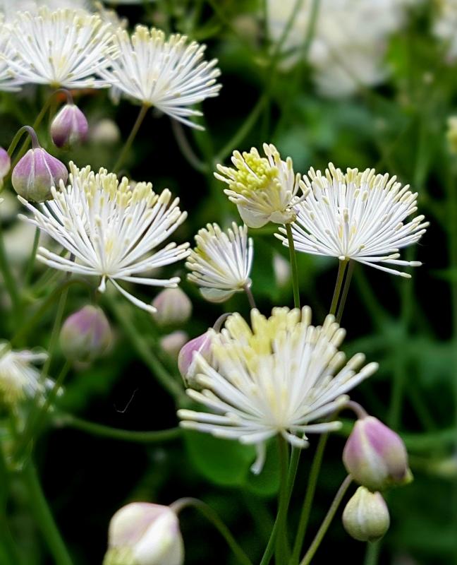 Hier beginnen die Thalictren mit der Blüte, im Bild t. aquilegifolium ´Nimbus White `
