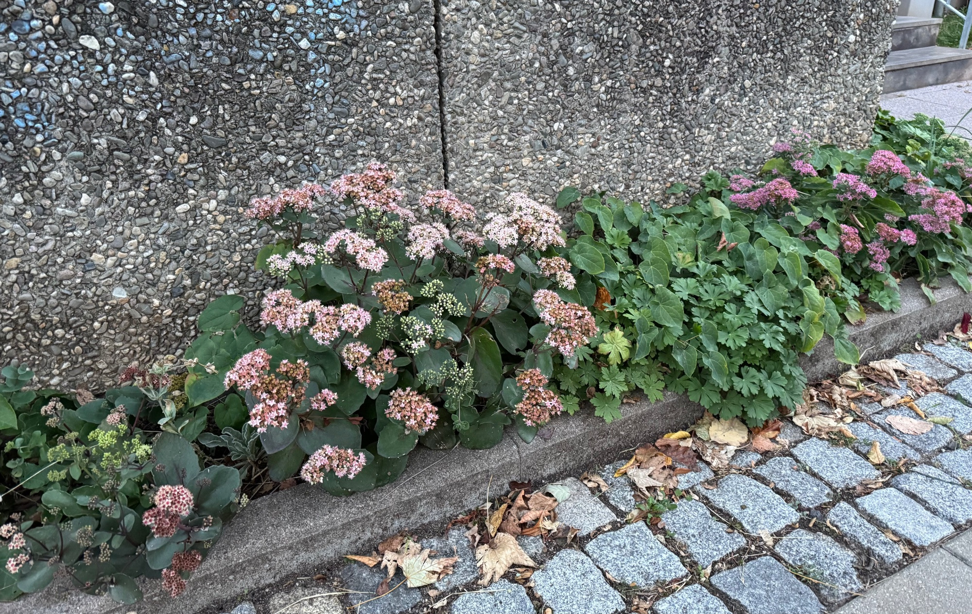 Hylotelephium, Geranium und Epimedium. Es ist grün und Blüten gibt’s auch fast ganzjährig.