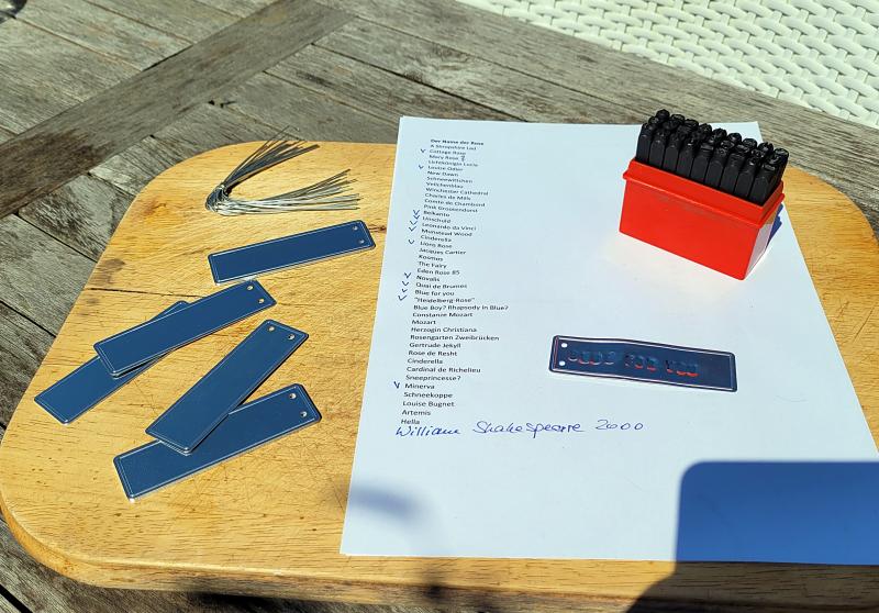 Ach was, die Schildchen gibt's fertig zu kaufen und das Einstanzen dauert keine Minute.