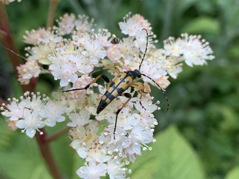 Gefleckter Schmalbock… schon irgendwie recht hübsch. Von denen sitzen gerade ständig welche in den Rodgersienblüten.