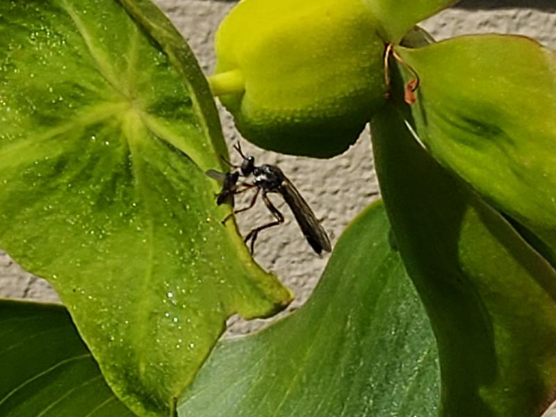 Die Beute scheint eine kleine Fliege zu sein.