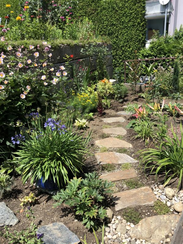Gejätet, aufgebunden, gepflanzt - so lange ich noch schattige Bereiche dafür hatte. Außerdem noch Trittplatten verlegt und GG Sachen zugereicht, der im Inneren der zukünftigen Zisterne gearbeitet hat.....