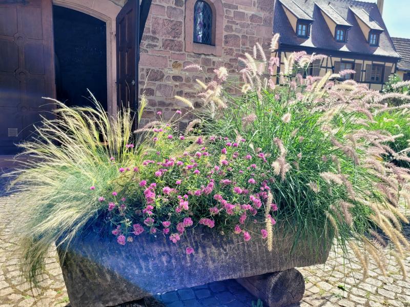 Auffällig sind überall üppigst bepflanzte Steintröge mit z, B. herrlichen Gräsern, Buntnesseln und tollen Salbei in vielen Sorten.